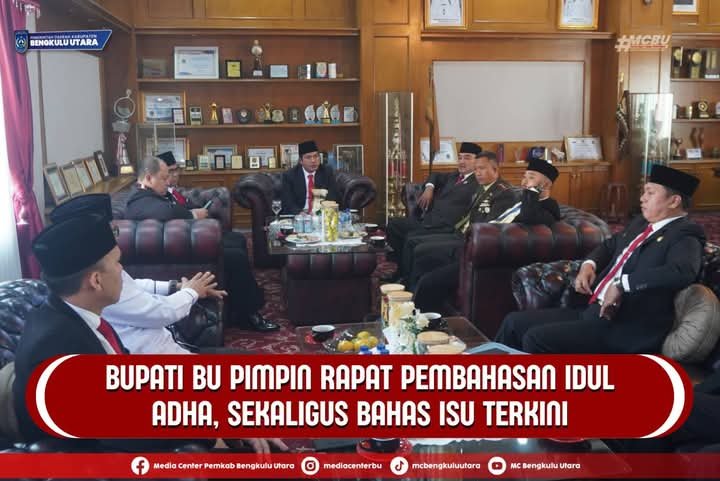 Bengkulu Utara aktualklick.com Bupati Bengkulu Utara, Arie Septia Adinata, S.E, M.Ap, didampingi Wakil Bupati Bengkulu Utara, H. Sumarno, S.Pd, memimpin kegiatan rapat persiapan pelaksanaan Idul Adha 1446 Hijriyah sekaligus membahas isu – isu terkini yang terjadi di wilayah Bengkulu Utara bersama jajaran Forkopimda Setdakab Bengkulu Utara, Senin (02/06/2025).