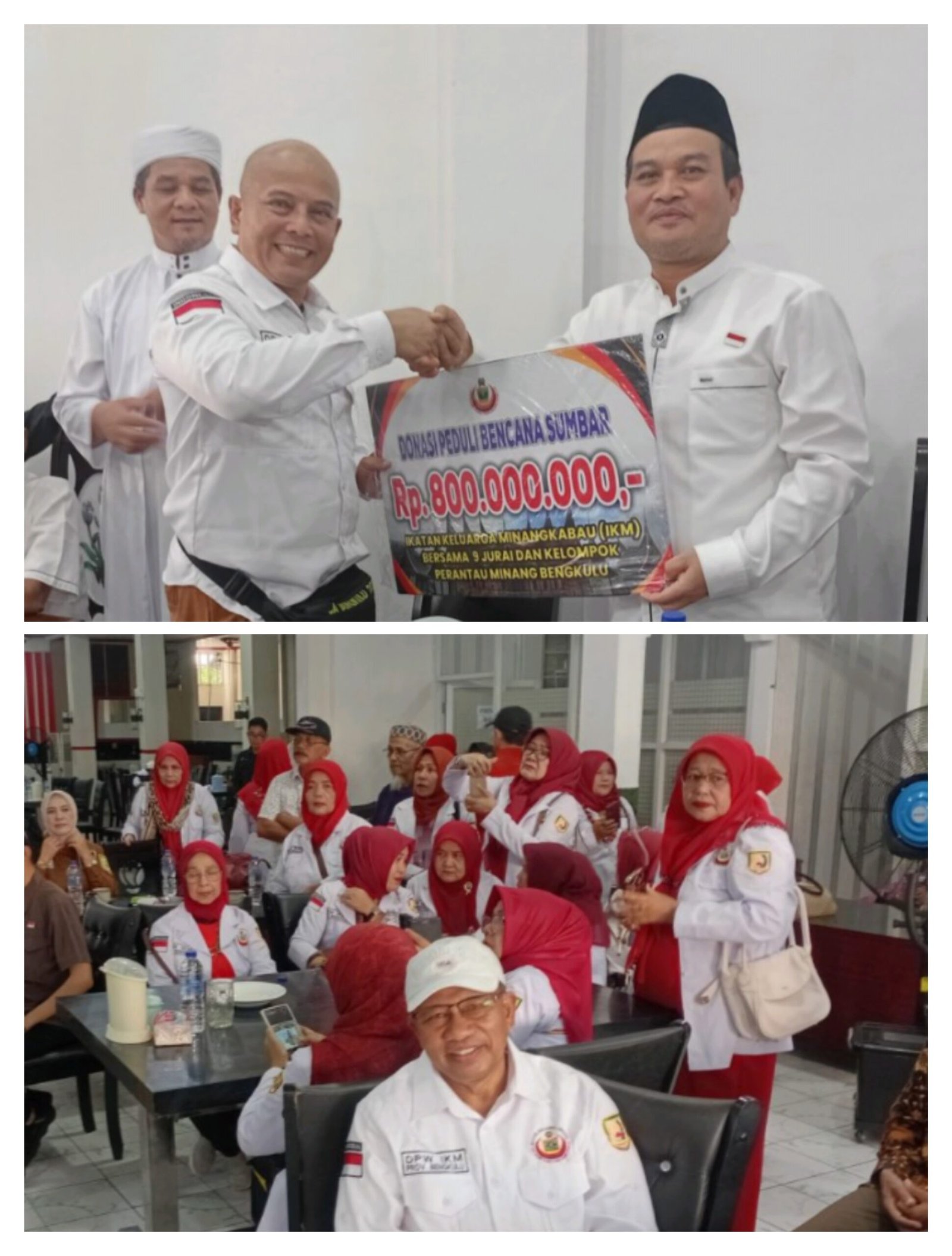 Alboy Novebra, Wakil Ketua 1 DPW IKM Bengkulu, sebut donasi Rp 800 juta untuk korban banjir dan longsor di Sumbar terkumpul dari DPD, Jurai, dan organisasi.