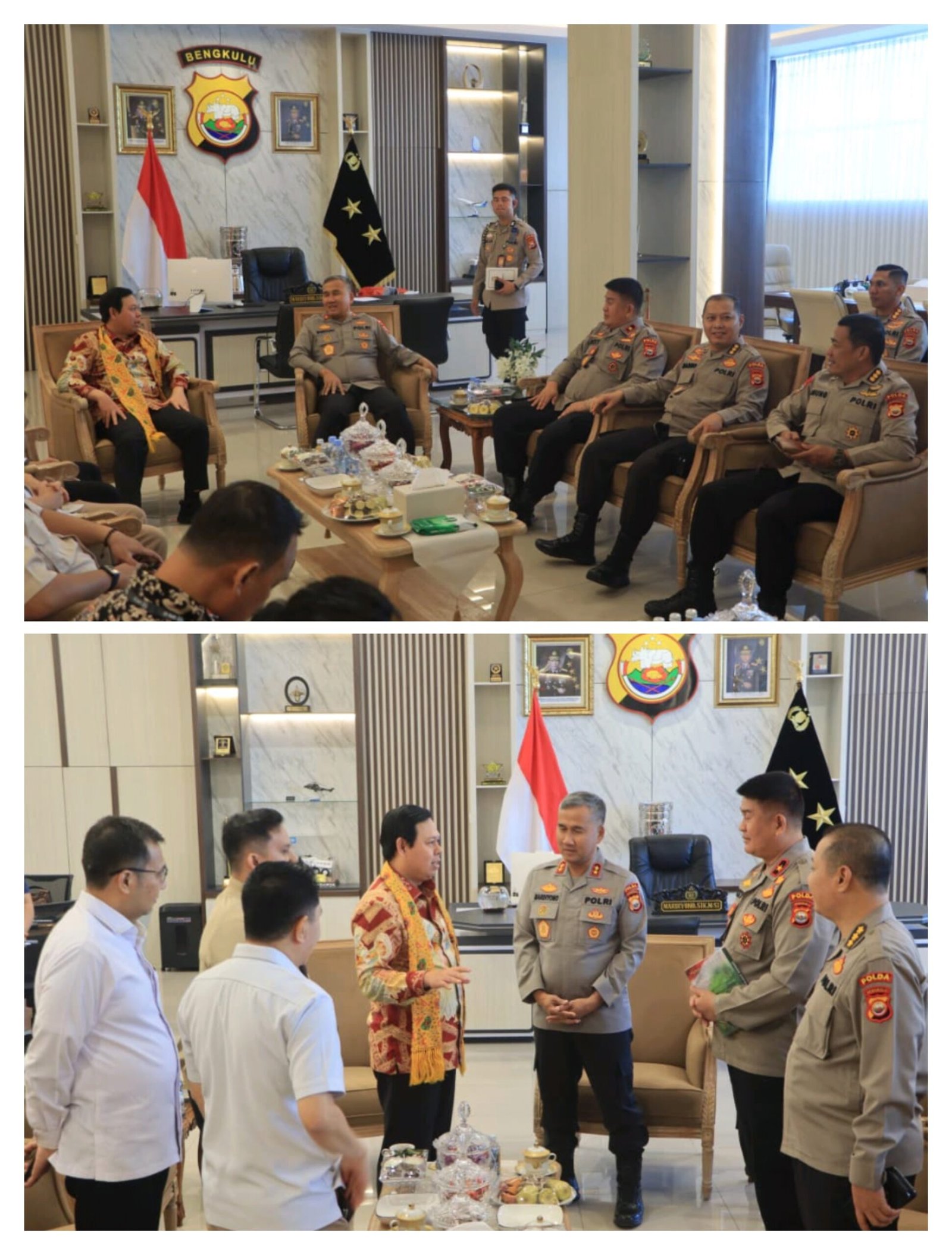 Dalam kesempatan tersebut, Kapolda Bengkulu menyampaikan ucapan terima kasih dan apresiasi atas kunjungan Ketua DPD RI beserta rombongan. Ia menegaskan bahwa kehadiran pimpinan lembaga negara tersebut menjadi kehormatan sekaligus motivasi bagi seluruh jajaran Polda Bengkulu untuk terus meningkatkan kinerja dan pelayanan kepada masyarakat.