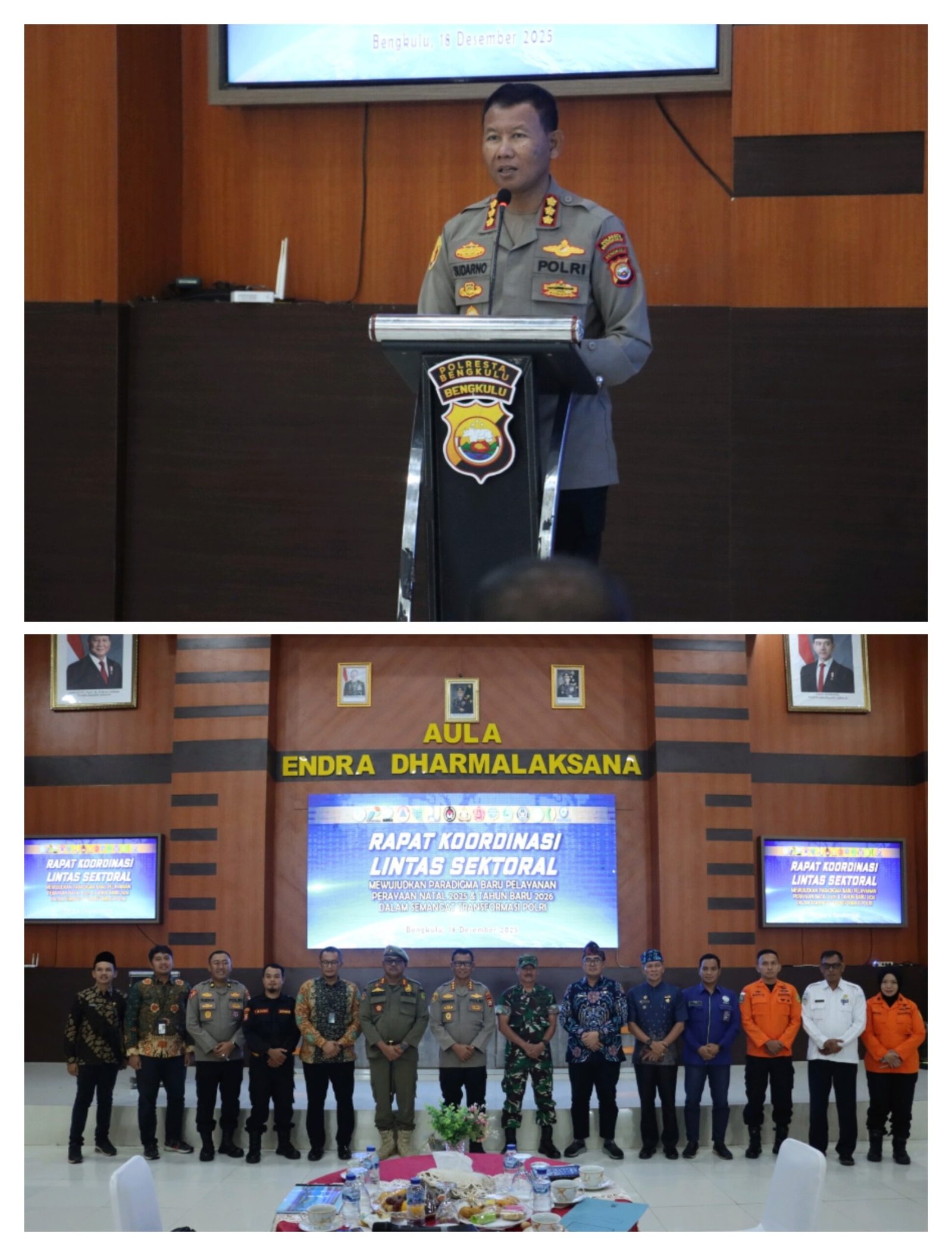 Rapat koordinasi tersebut dipimpin oleh Kapolresta Bengkulu dan dihadiri oleh unsur TNI, Pemerintah Daerah, Dinas Perhubungan, Satpol PP, BPBD, Dinas Kesehatan, pengelola tempat ibadah, serta instansi terkait lainnya. Kegiatan ini bertujuan untuk menyamakan persepsi dan langkah strategis dalam pelaksanaan pengamanan serta pelayanan kepada masyarakat selama momentum Natal dan Tahun Baru.